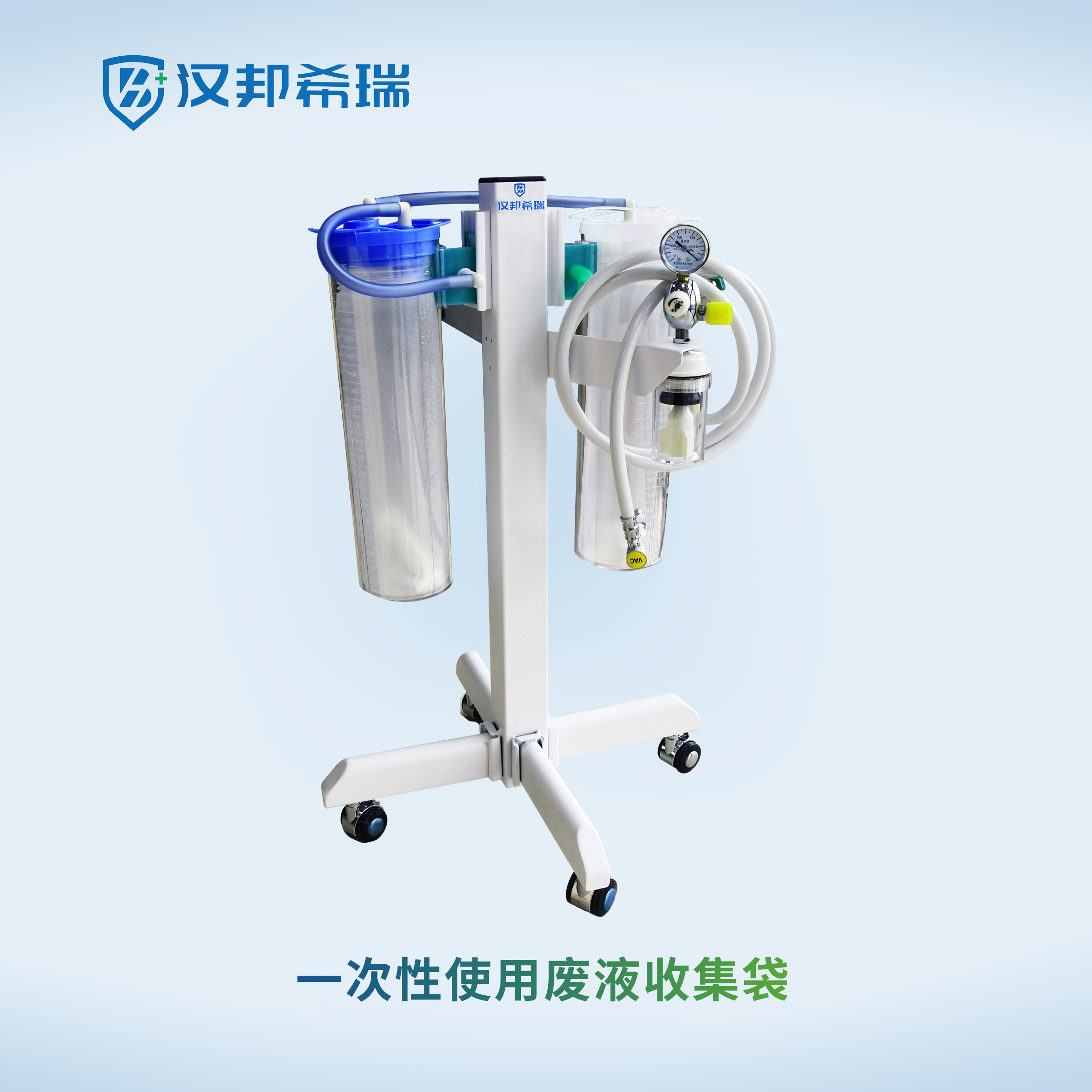 負壓源接頭連接負壓源,袋體收集完成后自動彈出,方便更換和使用;內含凝固劑,可以迅速固化廢液,本品為非無菌提供,一次性使用。