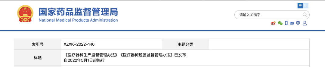 5月1日開始,新版《醫療器械生產監督管理辦法》《醫療器械經營監督管理辦法》開始正式執行。